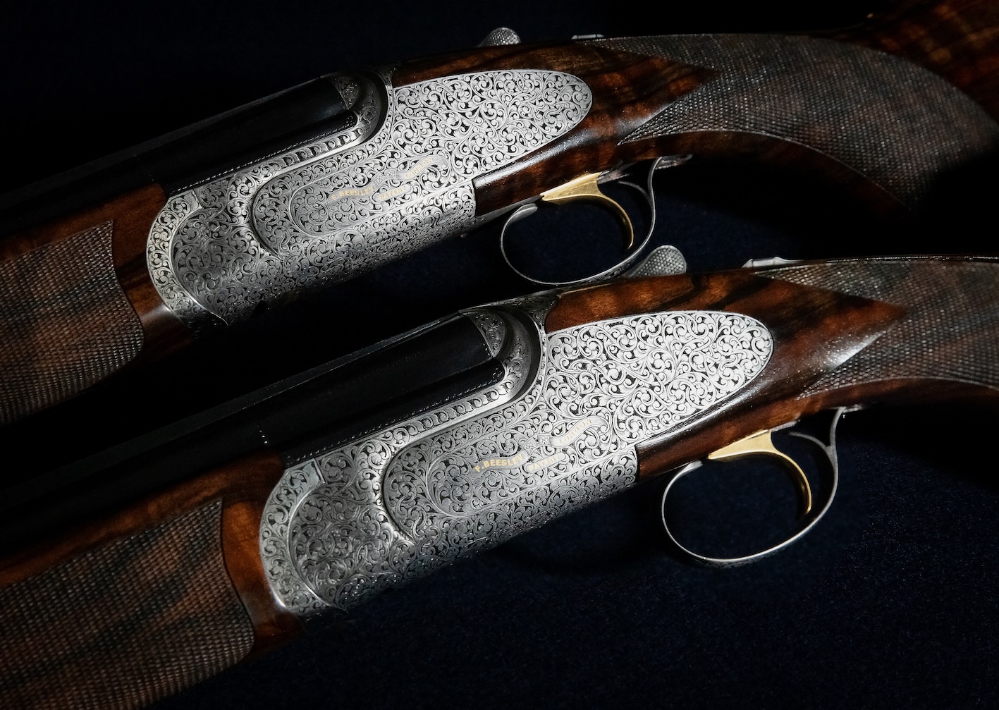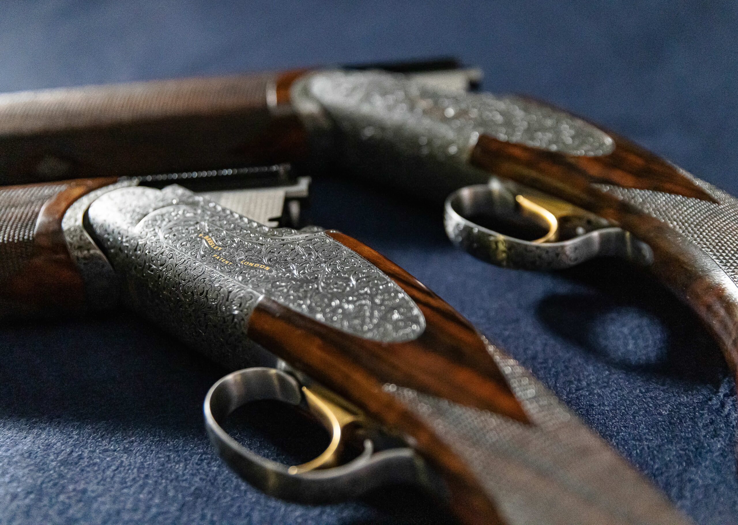 PAIR: This Frederick Beesley Fenice pair are truly stunning guns, featuring round bodied, sideplated hand engraved actions, combining modern gun-making with a classic aesthetic. The engraving features F. Beesley’s deep scroll ,a modern interpretation of a design that has featured on our guns since 1879.